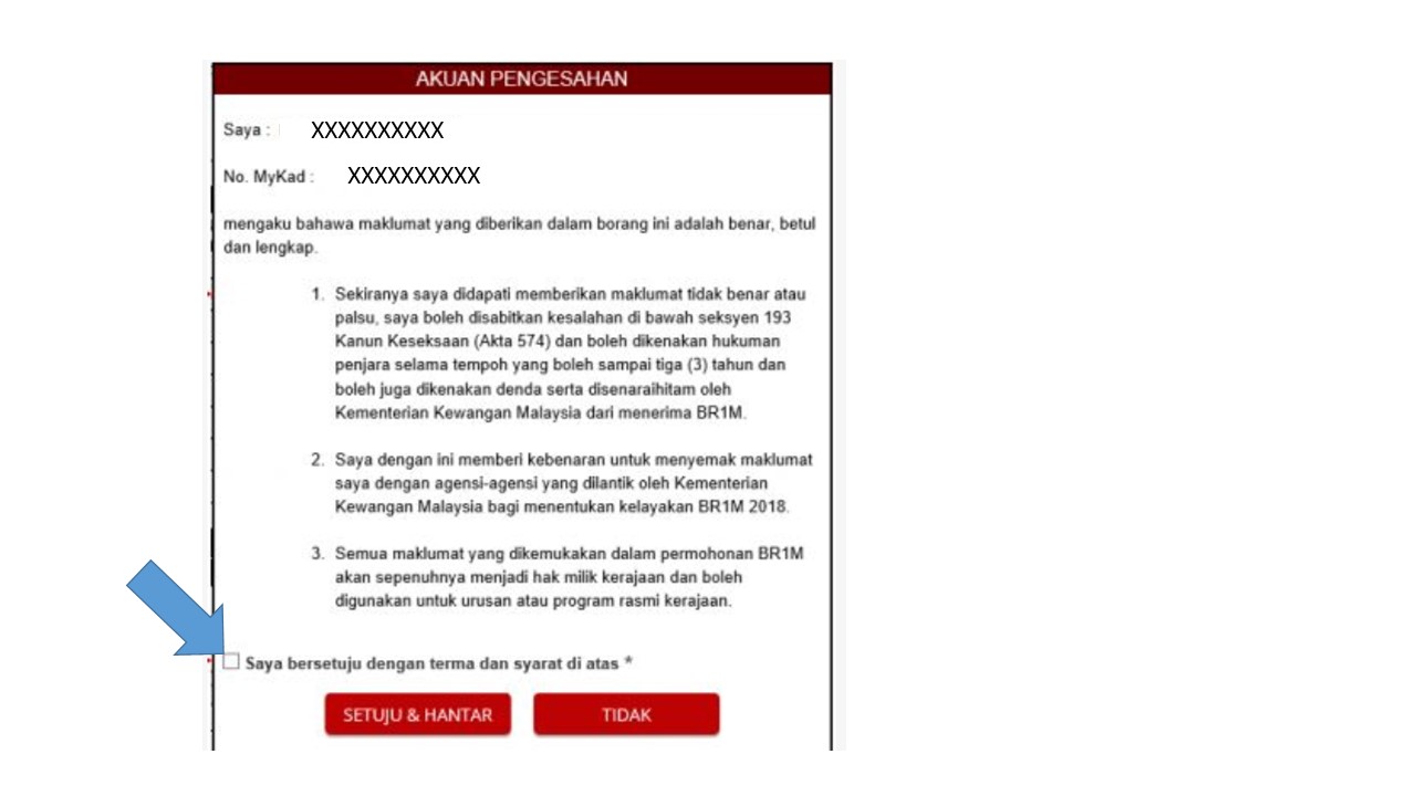 Step 9: This window will pop out, tick the small box and click " Setuju& Hantar"